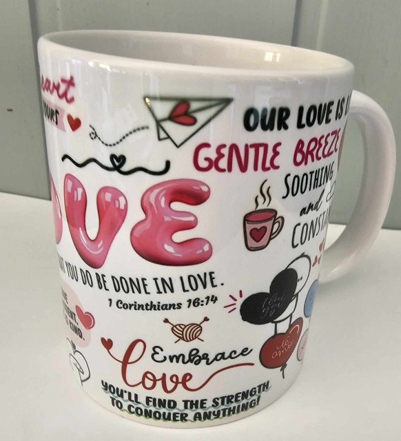 Kvit kopp med bilde, tekst. Dette er sublimert inn i koppen slik at det forsvinner ikke om en vasker koppen i maskin, kan trygt vaskes i oppvaskemaskina. Sublimering er et blekk som blir presset på med varme, bilde/teksten er "stekt" på. Så det er permanent.